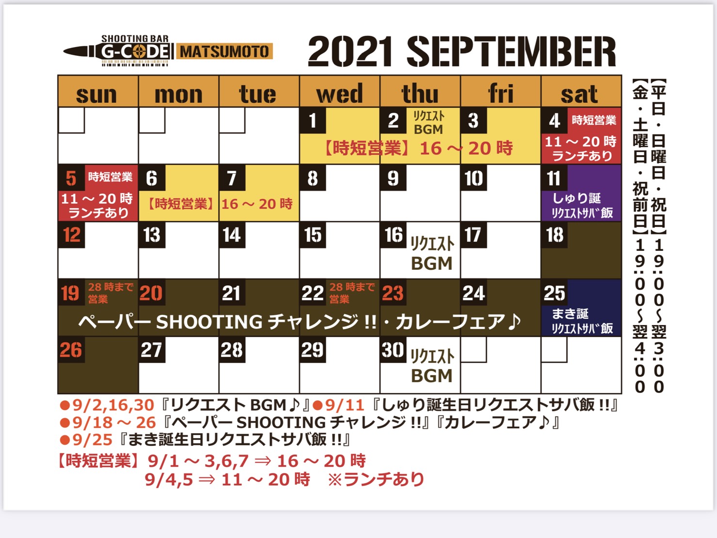 9月も前半は時短営業が続きます!