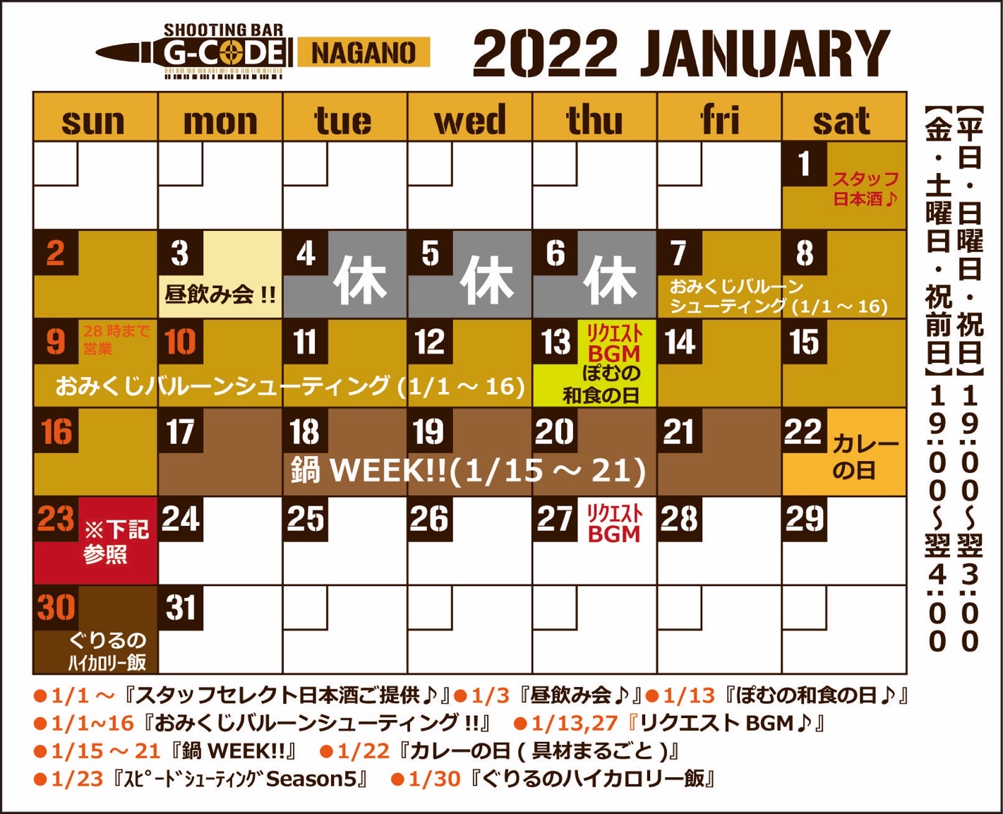 ぜひお休みの内にたくさん撃って飲んで楽しんじゃいましょう!!