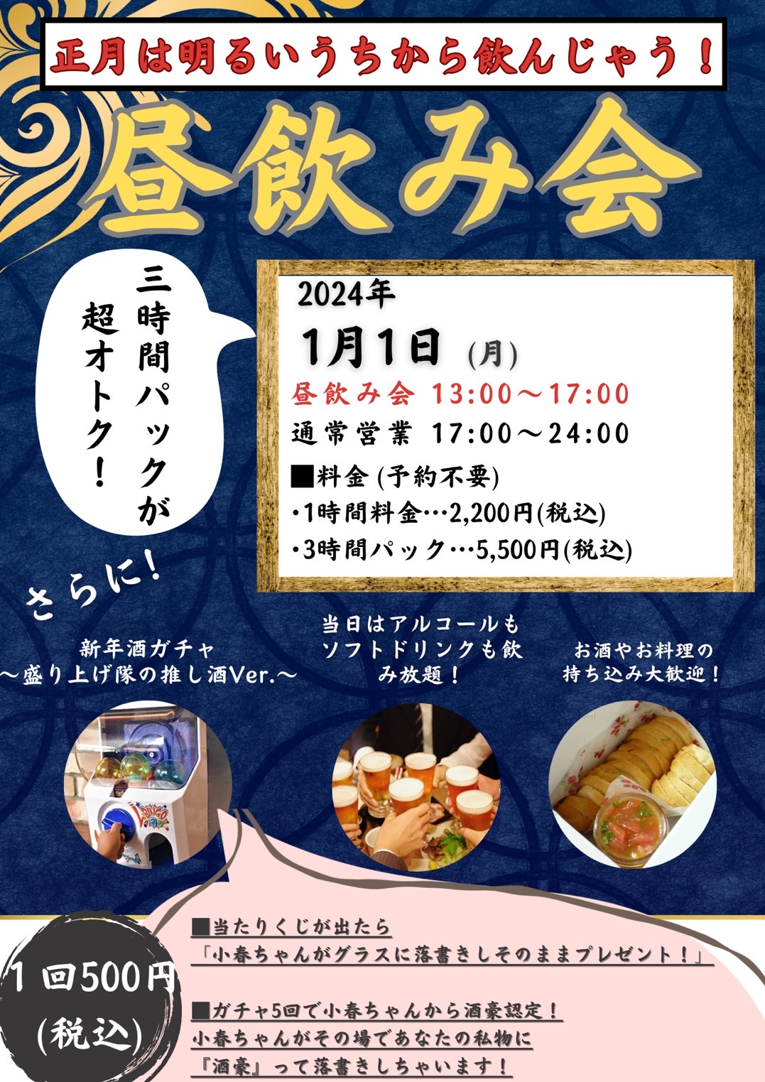 ◆1/1(月) 『新年!昼飲み会』開催!!