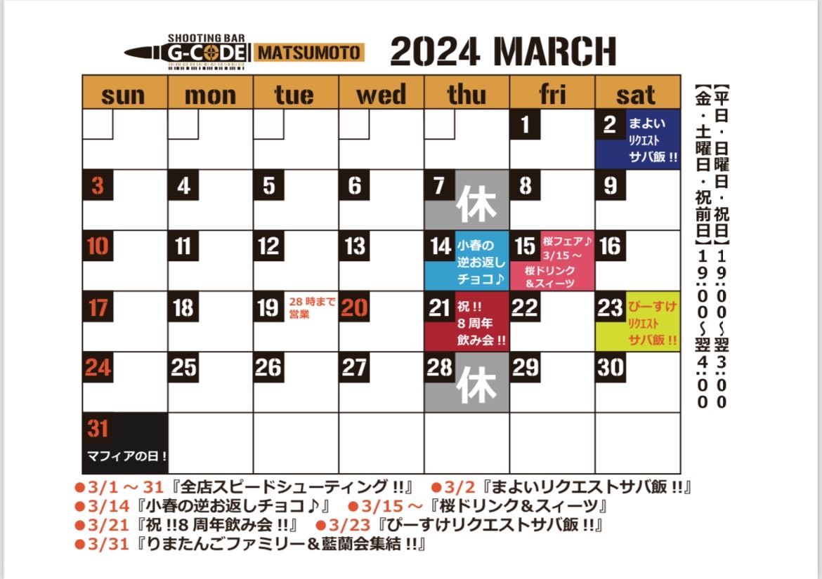 3月はG-CODE松本店の【8周年】をお祝いする特別な日がありますよ!