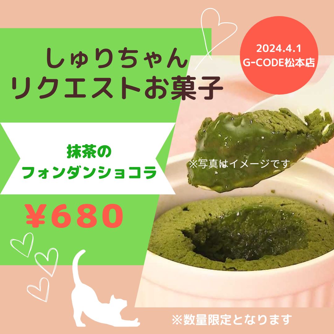 メニューは【抹茶のフォンダンショコラ】となります。お楽しみに!