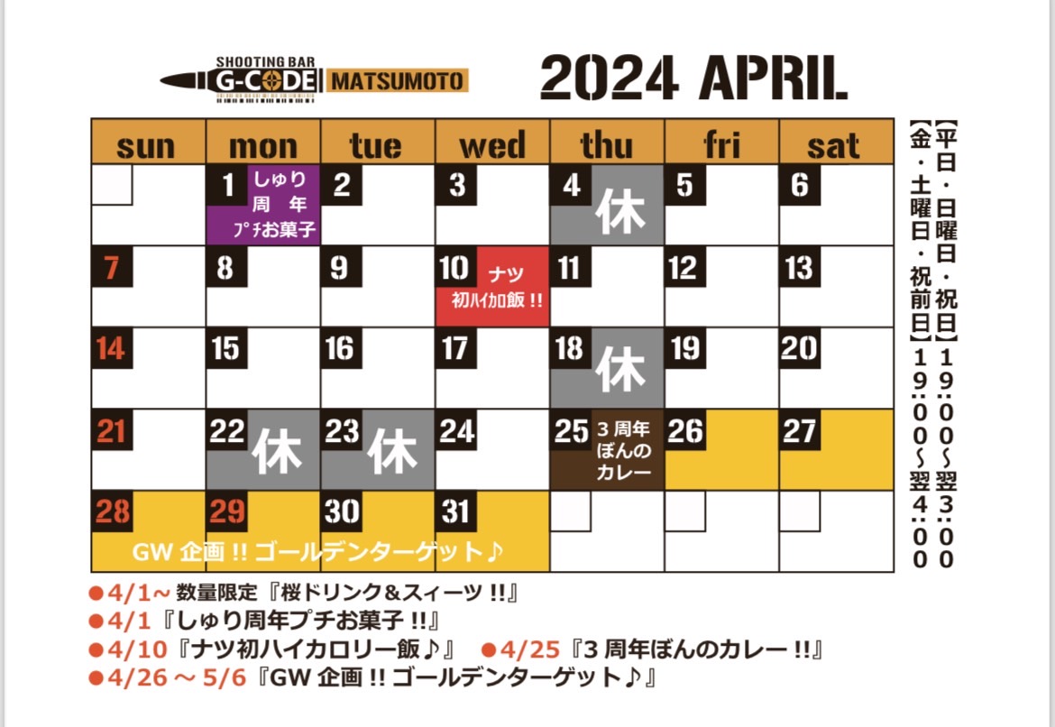 4月のイベントお待たせ致しました!