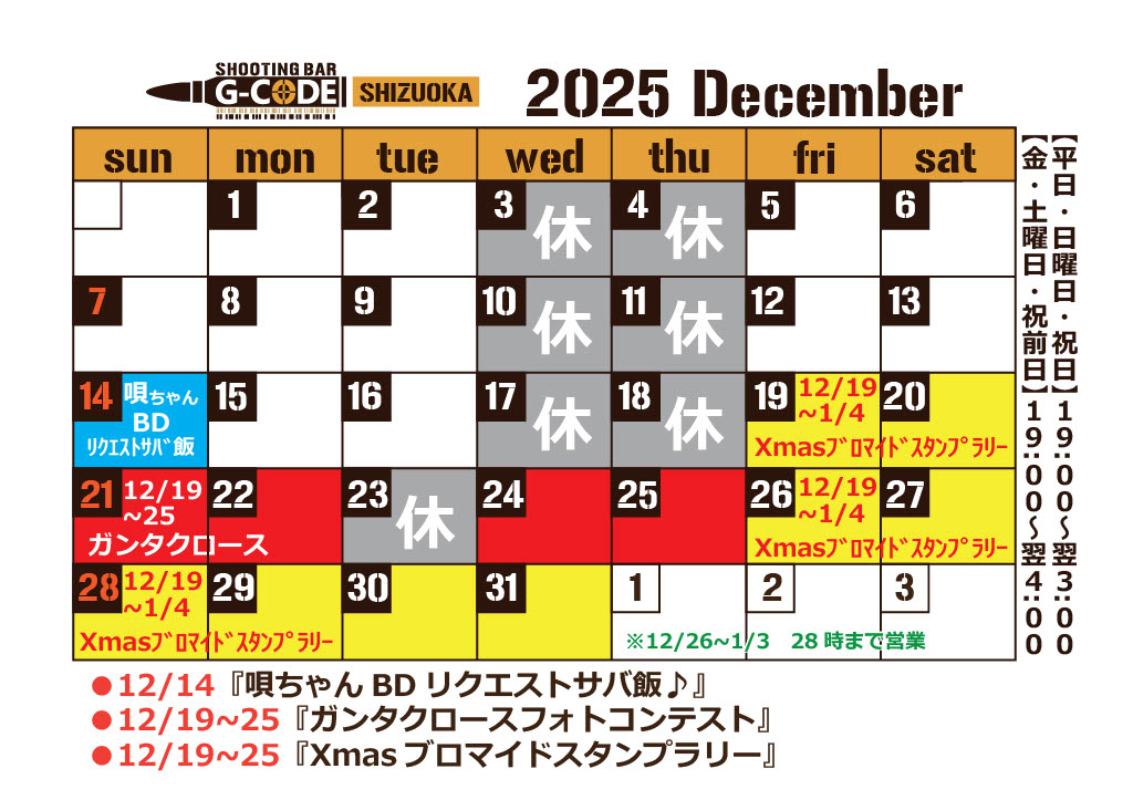 12月19日(日)~25日(木)G-CODE・GUNタクロース!