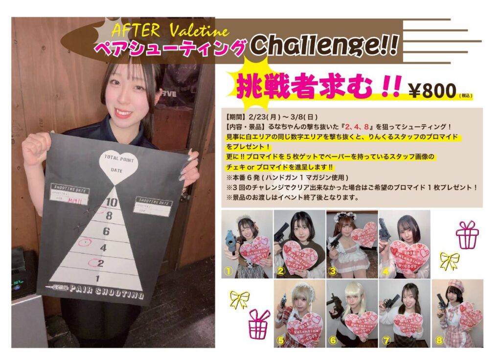 バレンタインイベント最終!当店スタッフのるなちゃんが撃ったペアシューティングのペーパーターゲットの2、4、8を撃ち抜いて限定ブロマイドをゲットしちゃいましょう!