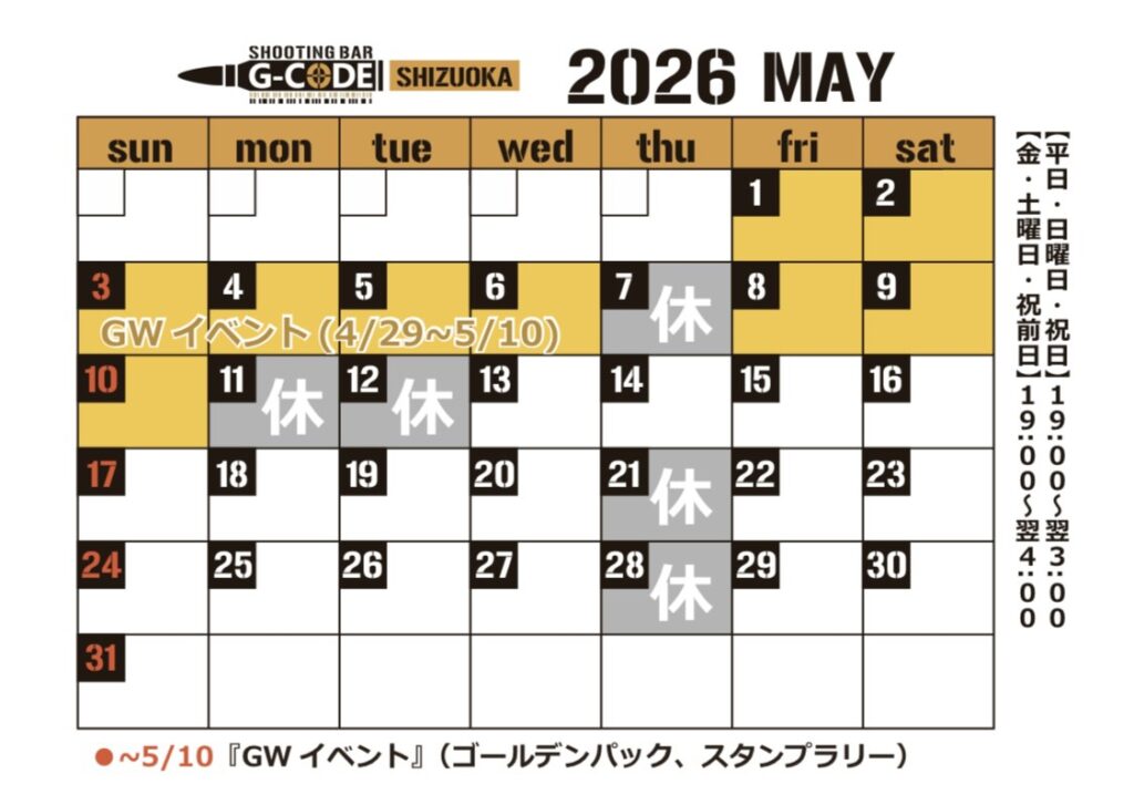 【静岡店】5月イベントカレンダー