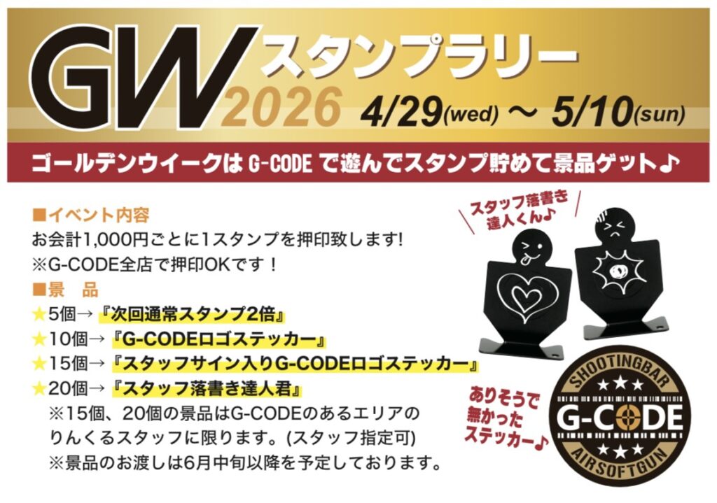恒例のスタンプラリーも開催!スタンプを貯めて【G-CODEステッカー・スタッフ落書き達人くん】などをGETしちゃいましょう!(*‘ω‘ *)