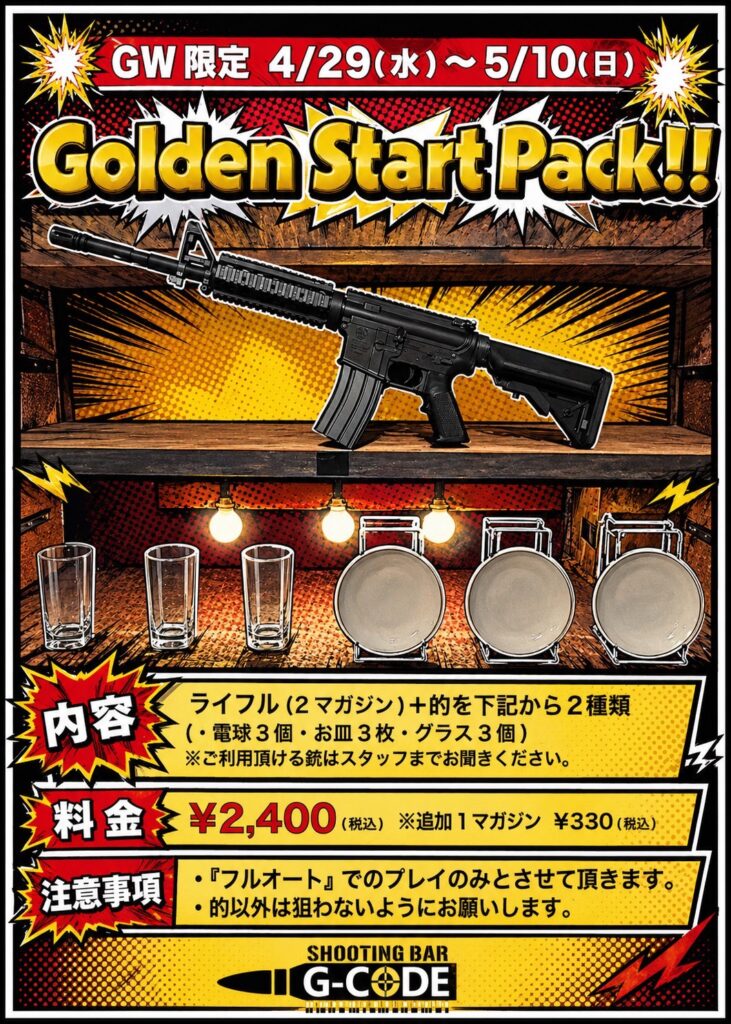 GWイベント開催!!期間限定のゴールデンパックで派手にシューティングを楽しんじゃいましょう!!